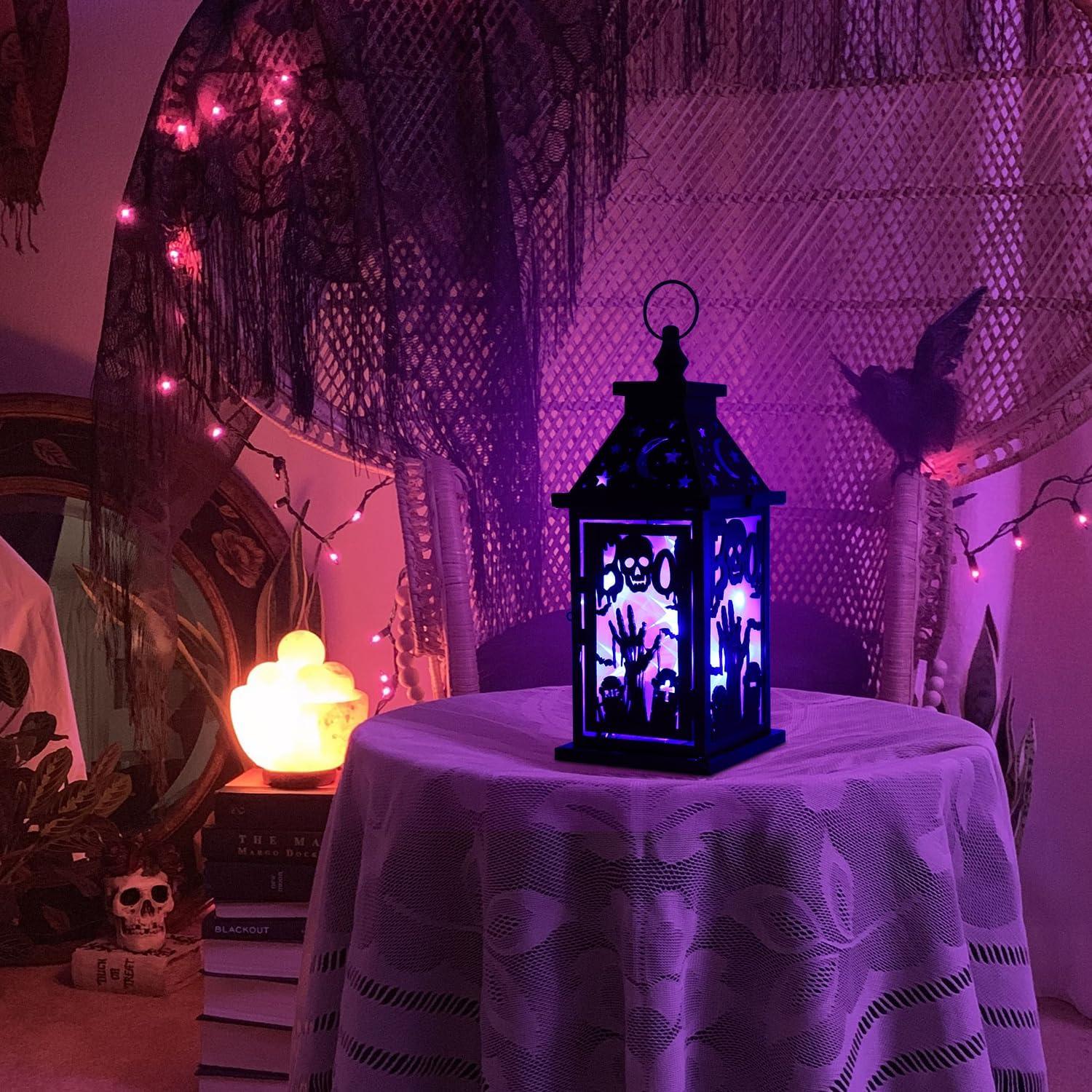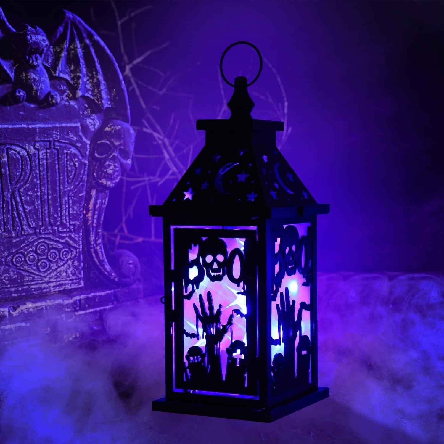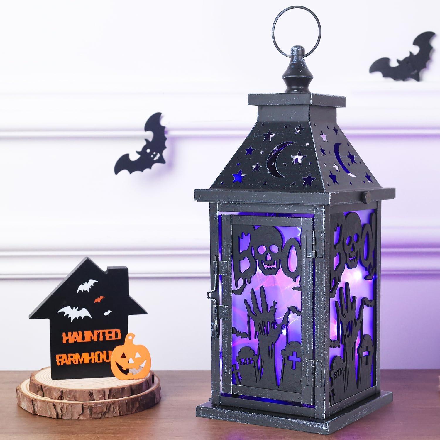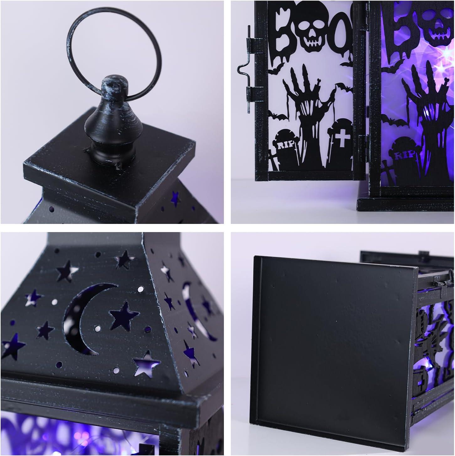 👻【HALLOWEEN INDOOR & OUTDOOR HOME DECORATIONS】Add the mood for Halloween evenings with the purple glow of lanterns. Sit this lantern on your porch steps, mantels, and windows for a mystery and terror touch. Brighten up your pathways and entryways this autumn with our Halloween lanterns. Lanterns can be displayed indoors or outdoors under a covered area.